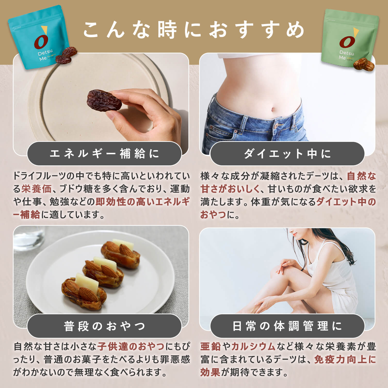 デーツは、マグネシウムやカリウムなど多くの栄養素を含む食品です。また低カロリーかつ自然な甘みがあり、食事バランスを考える方にぴったりの選択肢として注目されています。